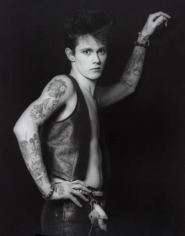 Smutty photographed by Robert Mapplethorpe wearing a LV4 Wristband.